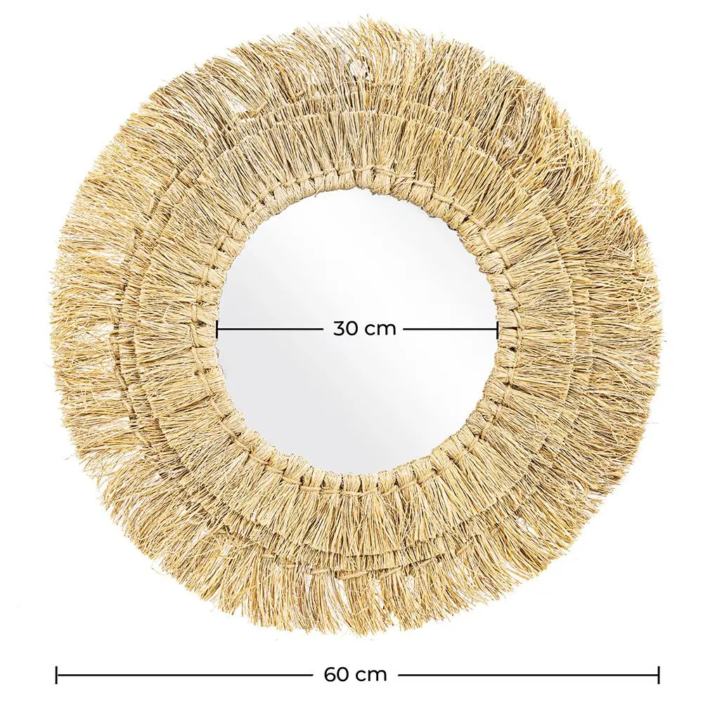 Der einzigartige Boho-inspirierte Wandspiegel Qui kann jedem Raum eine natürliche und entspannte Atmosphäre verleihen. Dieser runde Spiegel hat einen handgefertigten Seegrasrahmen in einer natürlichen Farbe. Er wird eine perfekte Ergänzung zu Ihrer Inneneinrichtung sein. Da dieses Produkt handgefertigt ist, kann das Design von Artikel zu Artikel leicht variieren.