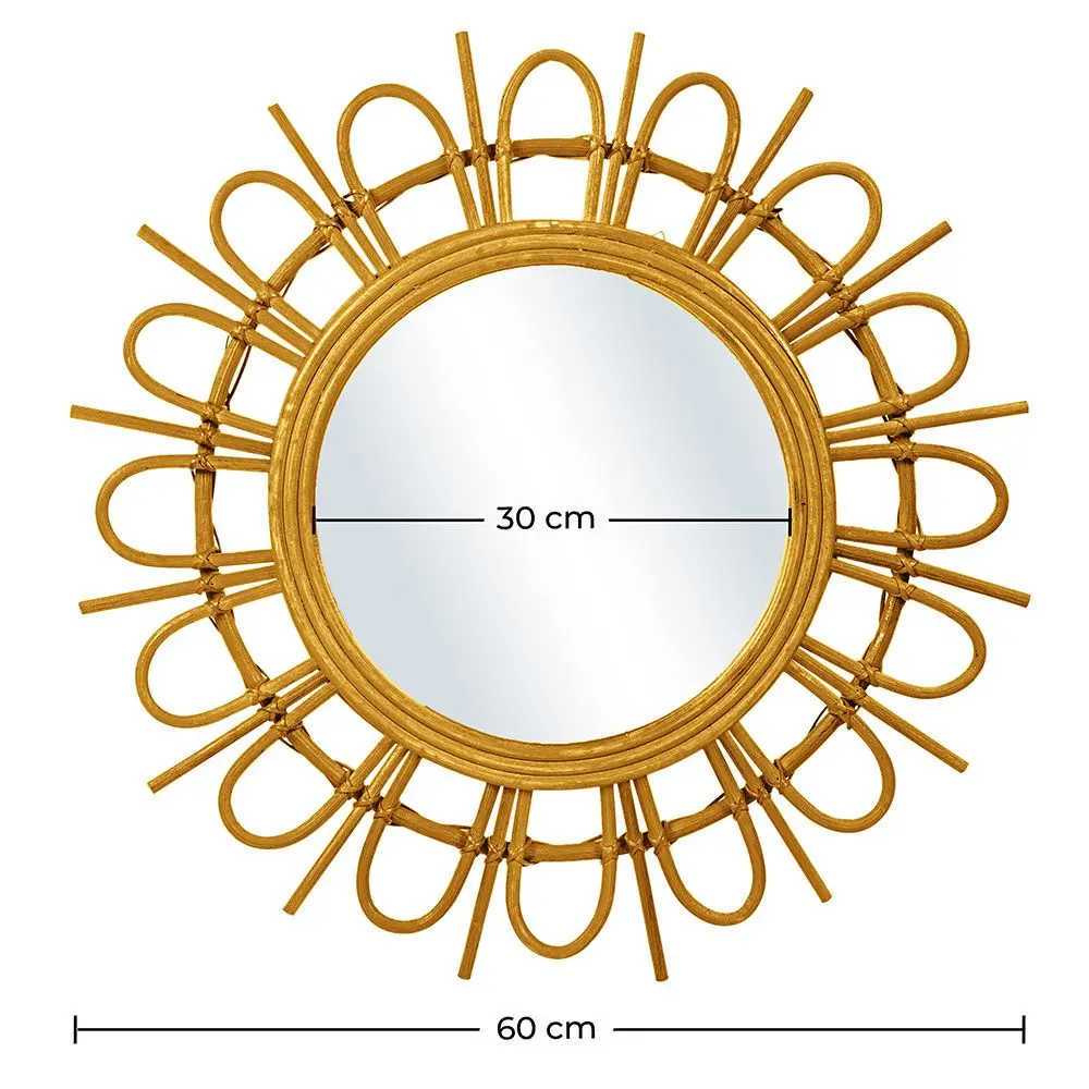Vom böhmischen Design inspiriert, ist dieser Wandspiegel aus natürlichem Rattan perfekt, um Ihrer Inneneinrichtung einen sehr trendigen Boho-Hauch zu verleihen. Dieser runde Spiegel kann im Eingangsbereich, im Schlafzimmer oder sogar im Badezimmer aufgehängt werden, wenn Sie einen natürlichen und einfachen Stil erreichen möchten. Da dieses Produkt handgefertigt ist, kann das Design von Artikel zu Artikel leicht variieren.
