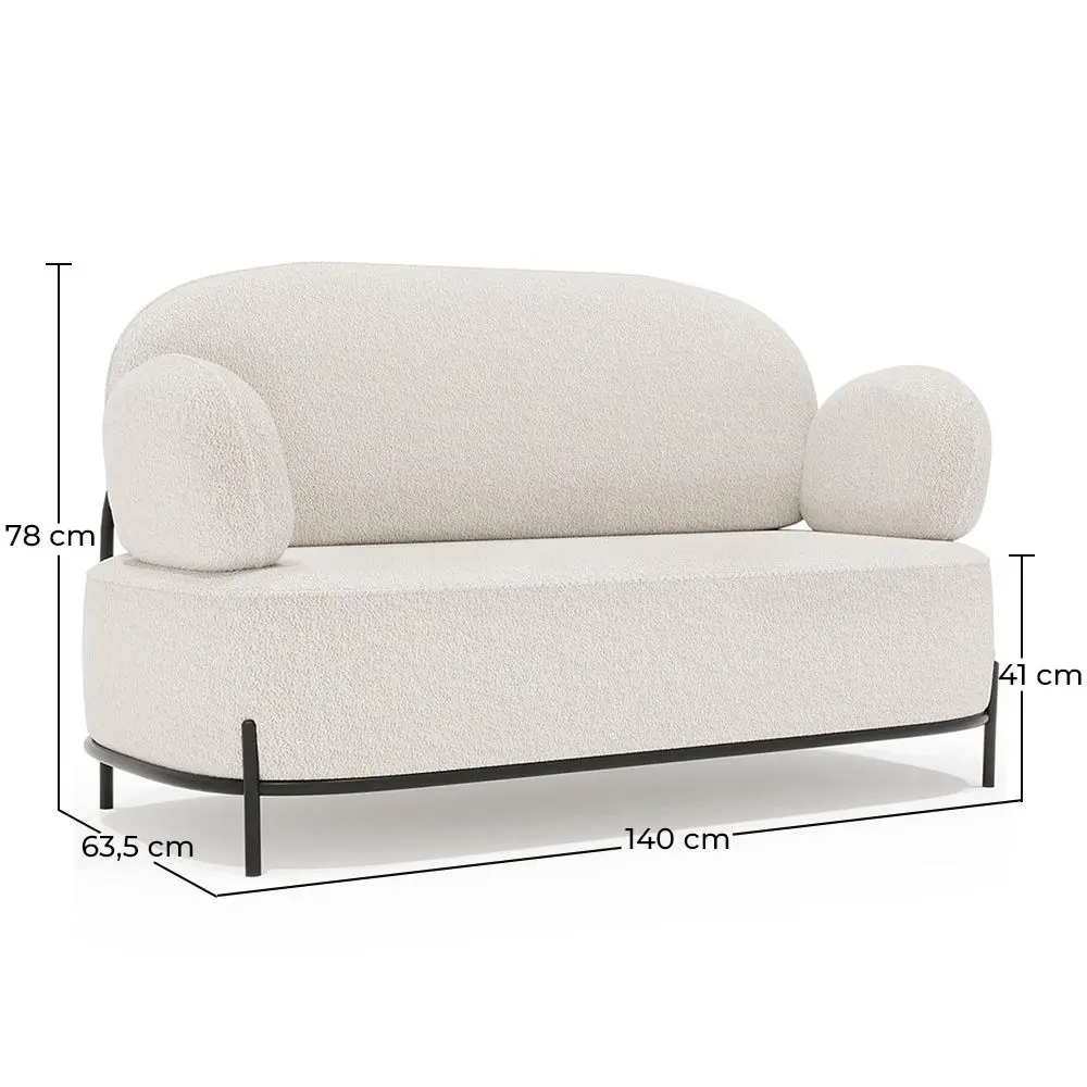 Das Munum Sofa, bezogen mit Bouclé-Stoff und mit Armlehnen, vereint Stil, Komfort und Funktionalität in einem Stück. Mit seinem weichen und eleganten Bezug sowie gut gestalteten Armlehnen lädt dieses Sofa zum Entspannen in einem gemütlichen und modernen Raum ein. Es ist ein Design-Schmuckstück, das Stil und Komfort in Ihr Wohnzimmer bringt. Mit seiner kompakten Größe und den schlanken Linien ist dieses Sofa perfekt, um eine ideale Atmosphäre in jedem Raum zu schaffen.
