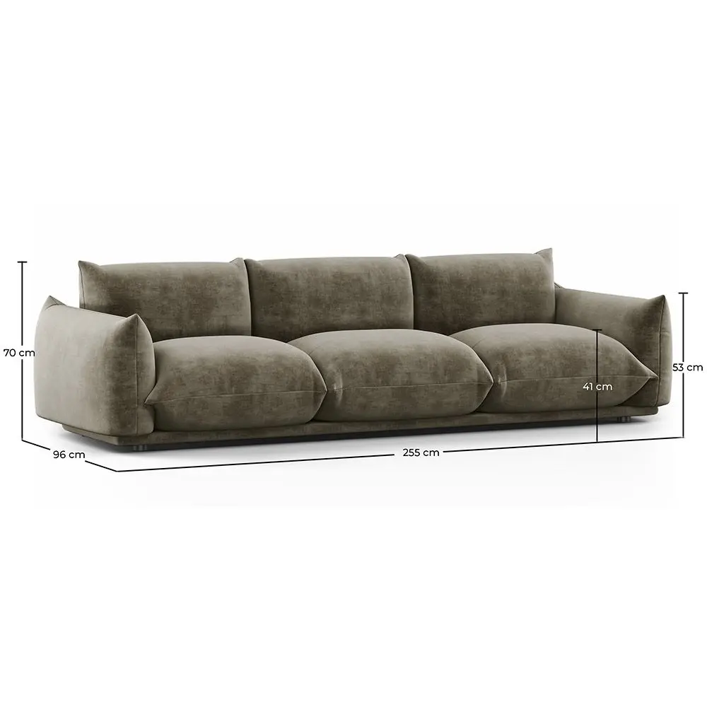 Mit Platz für drei Personen ist dieses mit Samt bezogene Sofa ideal für Familientreffen, Treffen mit Freunden oder einfach nur, um Ihre Freizeit zu genießen. Das klassische und zeitlose Design passt problemlos zu jedem Dekorationsstil, von traditionell bis modern, und die Auswahl an anspruchsvollen Farben ermöglicht es Ihnen, es nach Ihren Vorlieben und Bedürfnissen anzupassen. Daher eignet sich dieses Designer-Sofa sowohl für Zuhause als auch für öffentliche Räume wie Hotels, Büros oder Wartezimmer. Seine außergewöhnliche Langlebigkeit und die hochwertige Polsterung garantieren eine hohe Widerstandsfähigkeit gegen Abnutzung, während das elegante Design jedem Raum eine Note von Distinktion und Komfort verleiht. Sie erwerben nicht nur ein außergewöhnlich schönes Möbelstück, sondern auch ein Erlebnis von Luxus und unvergleichlichem Komfort.