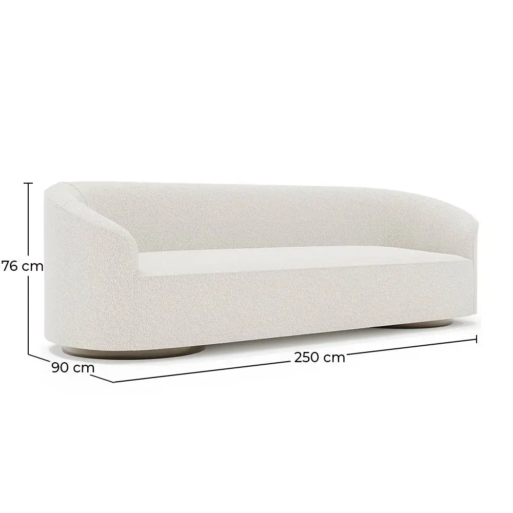 Dieses prächtige, übergroße Sofa, das Platz für 4/5 Personen bietet, ist ein Meisterwerk zeitgenössischen Designs und Komforts. Seine Bouclé-Stoffpolsterung verleiht ihm eine Note von Textur und Eleganz, die es perfekt für professionelle und gastfreundliche Umgebungen wie Luxushotels, Executive-Büros oder exklusive Wartebereiche macht. Bouclé-Stoff ist für sein charakteristisches Erscheinungsbild und sein weiches Gefühl bekannt. Seine charakteristische Textur, die kleinen Schlaufen auf der Oberfläche ähnelt, fügt nicht nur visuelles Interesse zum Sofa hinzu, sondern schafft auch ein Gefühl von Wärme und Komfort. Dieser Stoff ist langlebig und robust, was ihn zu einer vernünftigen Wahl für Bereiche mit hohem Kundenverkehr macht. Die robuste und hochwertige Konstruktion dieses Sofas gewährleistet seine Langlebigkeit im Laufe der Zeit und macht es zu einer klugen Investition für jedes Unternehmen, das Luxus und Komfort für seine Gäste und Besucher bieten möchte.