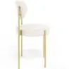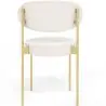 Der Martha Esszimmerstuhl ist eine charmante und funktionale Option. Mit seinem goldenen Metallgestell, ergonomischer Rückenlehne und rundem Sitz, der mit Bouclé-Stoff gepolstert ist, bietet dieser Stuhl eine perfekte Kombination aus Stil und Komfort. Unser Margot-Stuhl wurde mit Ihrem Komfort im Blick entworfen. Er bietet eine ausgezeichnete Unterstützung für den Rücken, sodass Sie lange Mahlzeiten genießen können, ohne Unannehmlichkeiten zu erleben. Darüber hinaus passt sich sein geschwungenes Design perfekt an die natürliche Form Ihres Rückens an und bietet optimale ergonomische Unterstützung. Der Bouclé-Stoffbezug ist nicht nur angenehm im Griff, sondern verleiht dem Stuhl auch Textur und Stil. Mit seinem gemütlichen Erscheinungsbild und seiner eleganten Ausführung ergänzt der Bouclé-Stoffbezug das goldene Metallgestell perfekt.