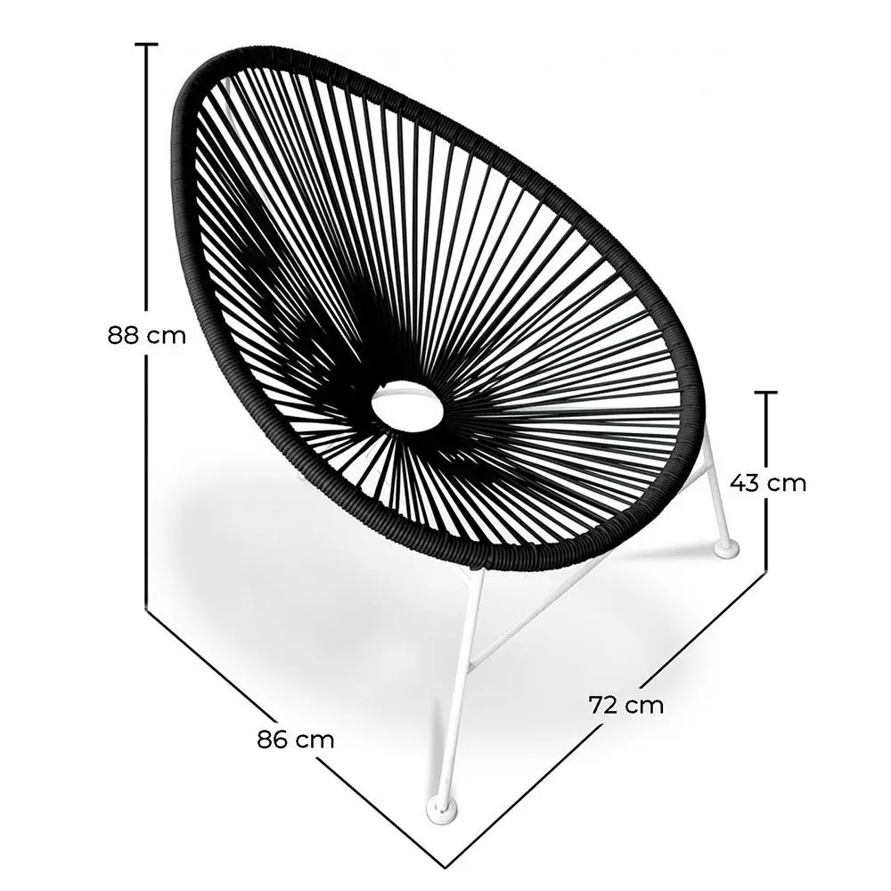 Der Acapulco Stuhl aus Stahl und Kunststoffstab ist handgefertigt. Dieser anerkannte und gelobte Stuhl, zum ersten Mal in den 50er Jahren hergestellt, zusätzlich zu seiner Originalität, zeichnet sich auch durch seinen Komfort aus.