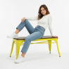 Von Bistrot Metalix inspirierte Bank im industriellen Stil. Sitz aus dunklem Holz und dunkle Metallstruktur. Solide, bequem, perfekt für lange Sommernächte, Gärten, für Versammlungen um den Esstisch, Restaurants, Cafés, Bistros. Länge: 107 cm.