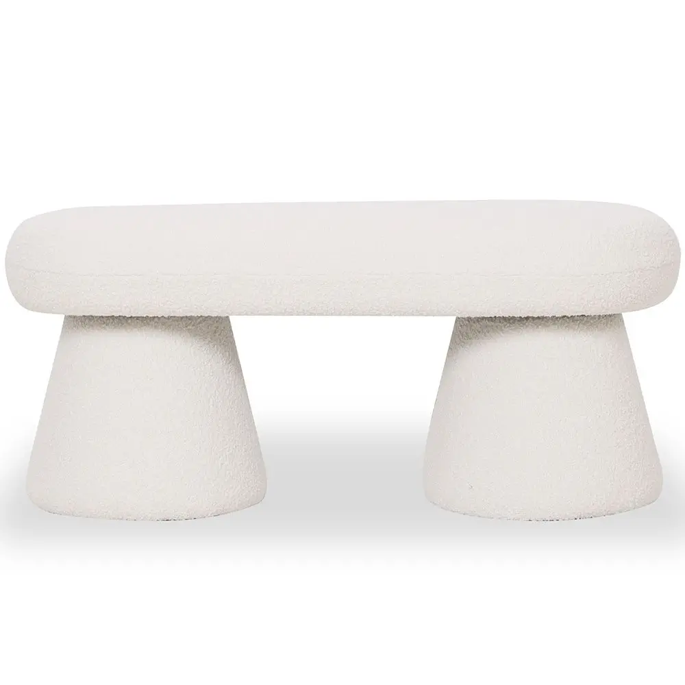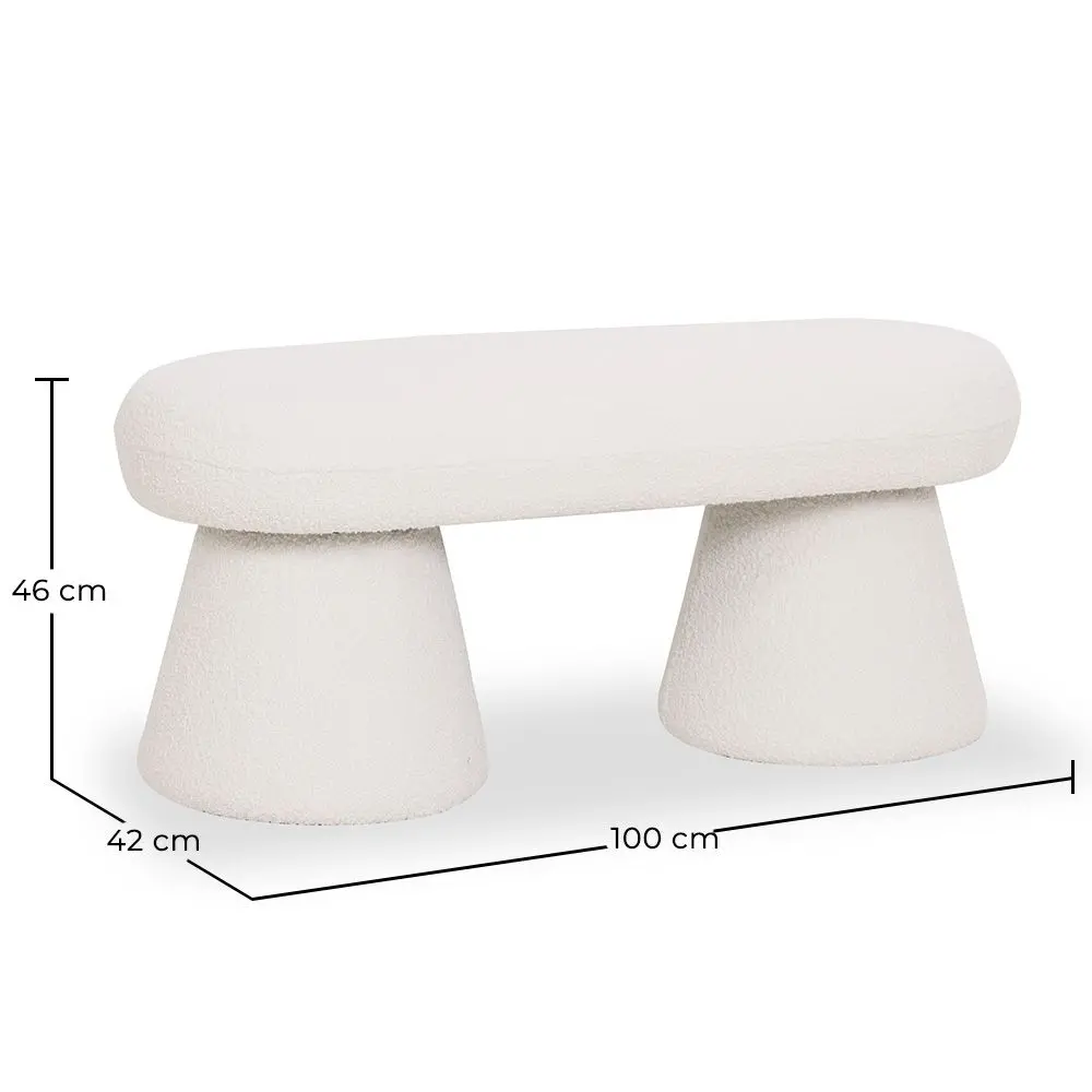 Diese Bank im zeitgenössischen Stil, gepolstert mit Bouclé-Stoff, bringt moderne Eleganz und Komfort in jeden Raum. Ihre weiche und warme Textur, kombiniert mit einer Polsterung aus hochdichtem Schaumstoff, bietet Komfort und Langlebigkeit. Mit ihrem minimalistischen und geschwungenen Design ist sie perfekt geeignet, um Wohnzimmer, Schlafzimmer oder Flur zu dekorieren und gemütliche Umgebungen mit skandinavischem und modernem Flair zu schaffen. Ideal für alle, die ein vielseitiges, elegantes und funktionales Möbelstück suchen.