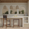 Der Kontrast aus gewebtem Leder und weichem Naturholz aus Teak verleiht diesem Barhocker seinen einzigartigen Charakter. Sie suchen noch nach Stühlen mit dem gewissen Extra? Der Barhocker mit Fußstütze und bequemer Sitzfläche stellt die perfekte Ergänzung für Ihre Kücheninsel dar.