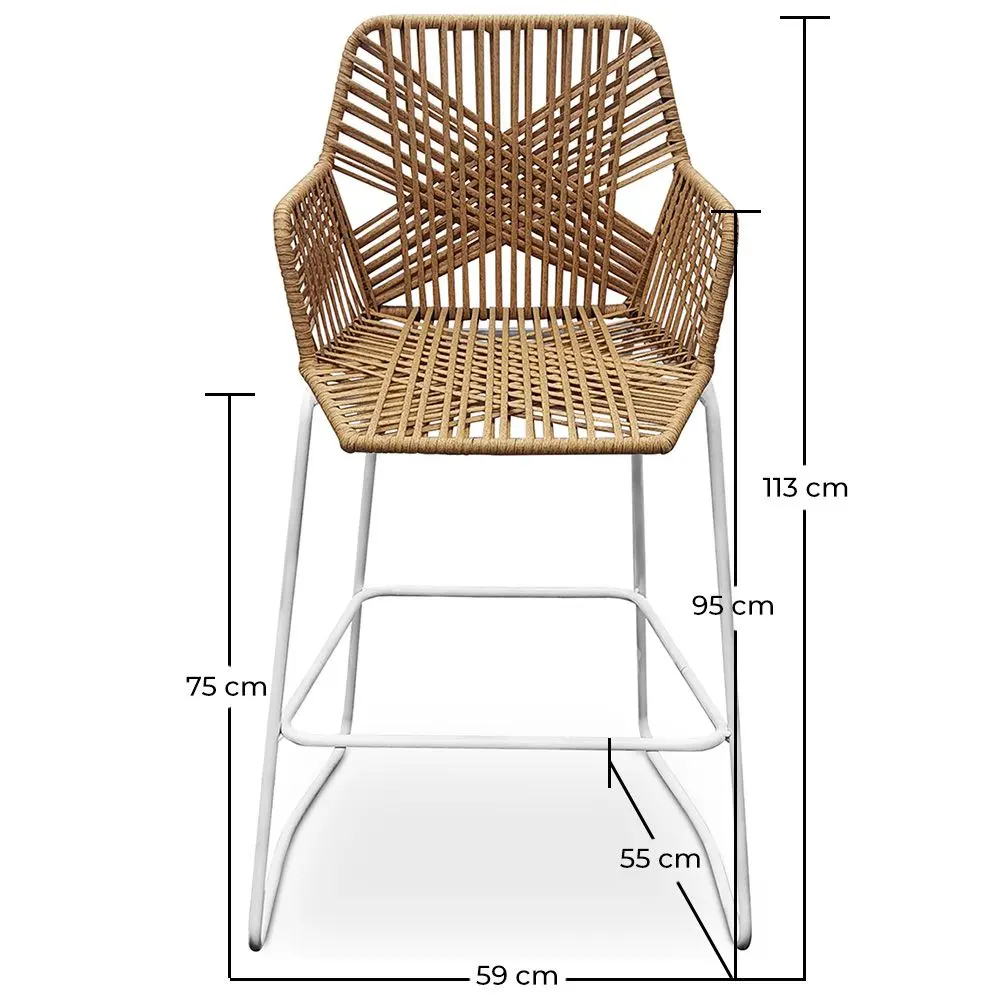 Der Rattanhocker sieht gut aus als Küchenhocker, und das Boho-Weben ist eine gute Quelle für Gespräche. Es hat einen soliden und robusten Rahmen für viele verschiedene Körpertypen und sieht am Pool oder mit Blick auf eine großartige Aussicht fabelhaft aus. Dieser Barhocker ist ideal für Hotels und Restaurants, die Luxus und Einzigartigkeit suchen, ohne dabei Kraft und Zweckmäßigkeit zu beeinträchtigen.