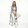 Mit einer Sitzhöhe von 60 cm ist es perfekt für Theken mit einer Höhe von etwa 90 cm. Die unterstützende Rückenlehne erhöht den Komfort, während der dunkle Holzsitz eine gemütliche und anspruchsvolle Note hinzufügt.