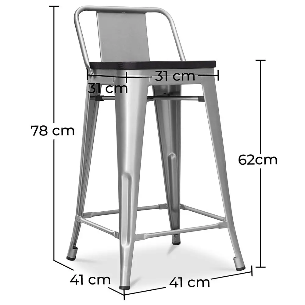 Industrieller Stil trifft auf Wärme und Komfort im Metalix 60 cm Hocker mit Rückenlehne und dunklem Holzsitz. Dieses Stück kombiniert die Stärke von Stahl mit der natürlichen Eleganz von Holz, was es ideal für Kücheninseln, mittelhohe Theken oder Innenräume im Gastgewerbe macht, die sowohl Funktion als auch Design schätzen.