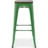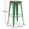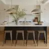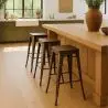 Mit einer Sitzhöhe von 76 cm ist er ideal für hohe Theken um 105 cm. Der dunkle Holzsitz verleiht Wärme und ein raffiniertes Finish, während der Stahlrahmen Haltbarkeit und Stabilität für den täglichen Gebrauch gewährleistet.