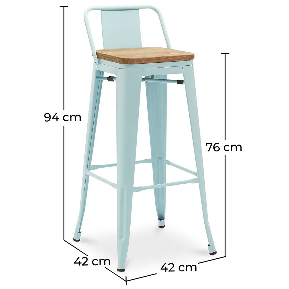 Das perfekte Gleichgewicht zwischen Komfort und industriellem Stil bietet der Metalix 76 cm Hocker mit Rückenlehne und heller Holzsitzfläche. Ideal für hohe Theken und moderne Küchen, kombiniert dieser Hocker die Haltbarkeit von Stahl mit der Helligkeit und Frische von hellem Holz.