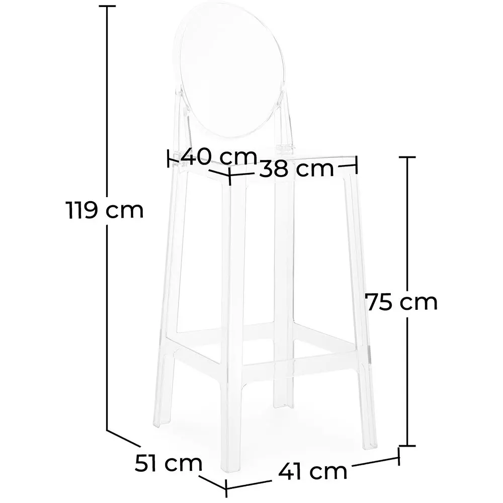 Eleganter Barhocker, inspiriert von der Victoire Kollektion. Es ist 75cm groß und ist aus PC. Dieser Hocker ist ideal für die Küchentheke, elegant und raffiniert, perfekt kombinierbar mit jedem Stil der Dekoration. Dies ist ein sehr stabiler Barhocker. Sie werden auch den 64cm hohen Victoire Hocker mögen.