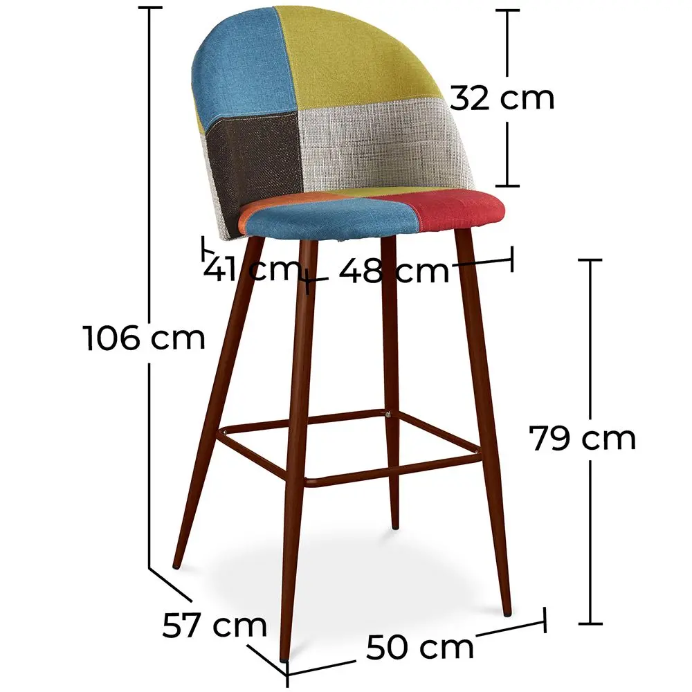 Ein schneller Kaffee am Morgen oder ein Drink am Abend an der Bar? Der Bennett Fiona Barhocker wird ein toller Begleiter durch die schönsten Tagesmomente sein! Der Konzept diese Patchwork Thekenhockers bildet einen auffälligen Kontrast zwischen den vielen Farben und dem dunklen Metallbeinen. Er sorgt für absoluten Komfort und schützt Ihre Wirbelsäule dank seiner gut angepassten Form. Diesen Stoffbarhocker kann man auch in Hotels, Bars oder Restaurants verwenden. Entscheiden Sie sich für einfaches Design und Linien, die nie ihren Charme verlieren.