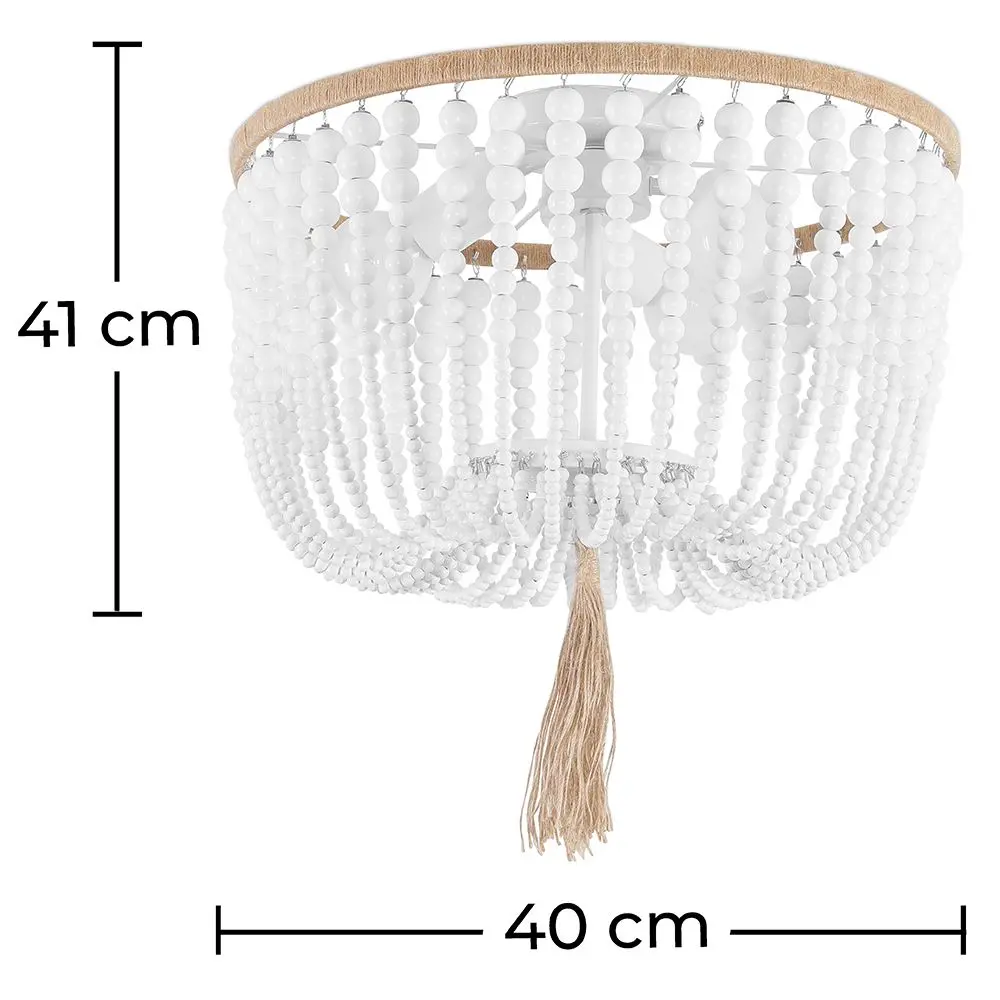 Es verfügt über einen massiven Metallrahmen, kombiniert mit ausgefallenen Holzperlen im Kronleuchterstil, was es zu einem großartigen Dekor macht und nicht nur als Deckenlampe dient. Die Lampe ist schnurgebunden, damit Hausbesitzer sie leicht reparieren können. Es garantiert eine Rundumbeleuchtung und funktioniert gut mit allen Arten von Lampenfarben.