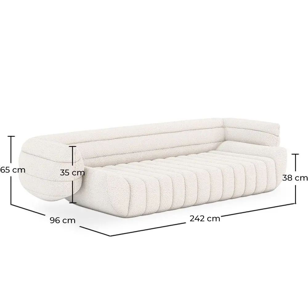 Dieses 3/4-Sitzer-Sofa mit Bouclé-Stoffbezug eignet sich perfekt, um Ihrem Wohnzimmer eine moderne und elegante Note zu verleihen. Sein extra langer Sitz, aus Imitat Schaffell-Stoff, ist ideal, um bequem zu entspannen oder die Gesellschaft von Familie und Freunden zu genießen. Das luxuriöse Design ist aus hochwertigen Materialien gefertigt, so dass das Produkt viele Jahre lang ohne Verlust seiner Eleganz hält, Ihre Investition wird belohnt.