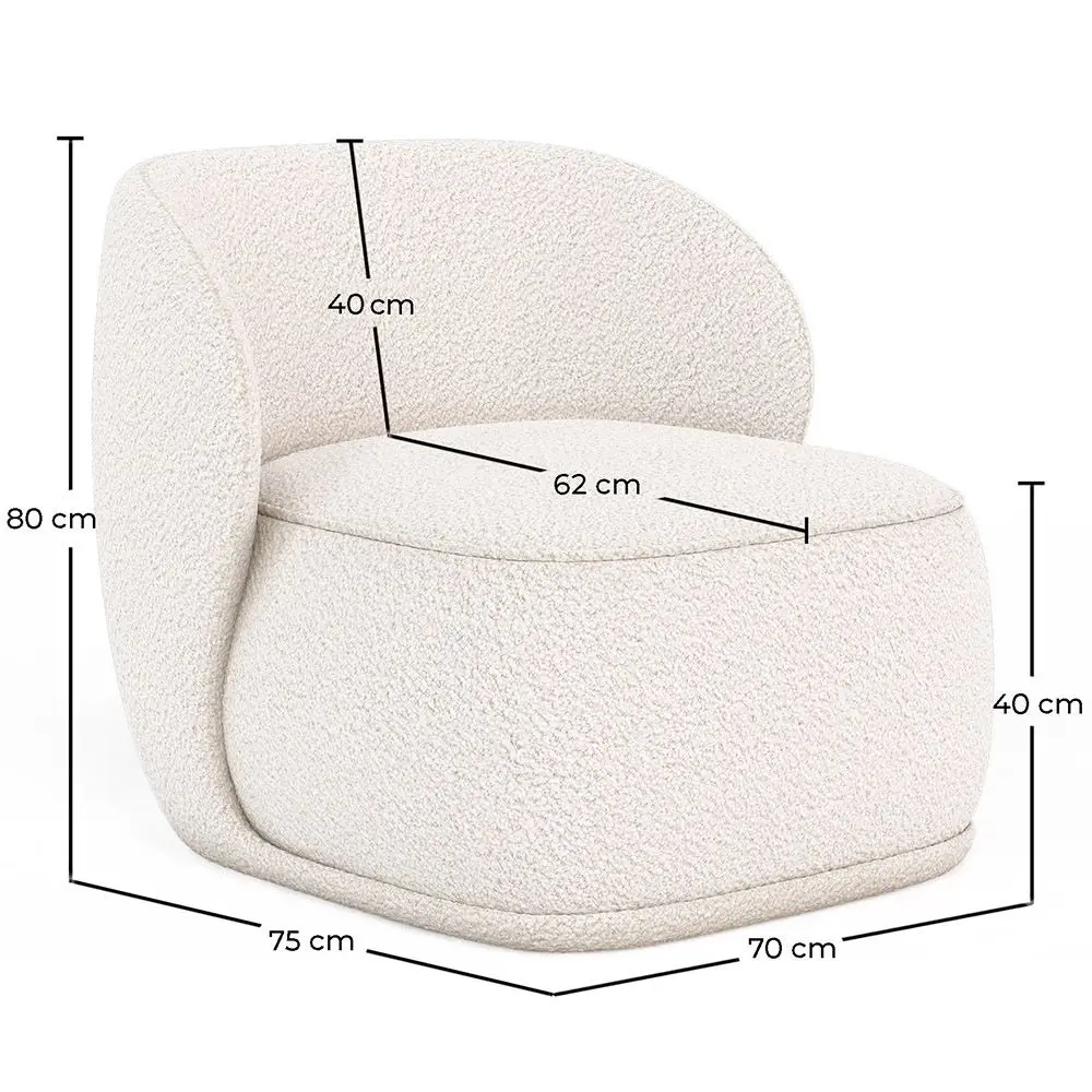 Treyton ist ein Stuhl, der nicht unbemerkt bleibt, elegant, einfach und trendy. Dieser Designer-Sessel ist ideal für Hotels, Cafés oder öffentliche Räume, die einen Hauch von Stil in ihrem Mobiliar suchen. Er ist jedoch auch für das Wohnzimmer oder Schlafzimmer gleichermaßen perfekt geeignet. Der Bezug aus Bouclé-Stoff, der Schaffell imitiert, verleiht Ihrem Raum eine gemütliche und warme Atmosphäre, und seine umhüllende Rückenlehne und gepolsterter Sitz bieten einen bequemen und angenehmen Sitzplatz.