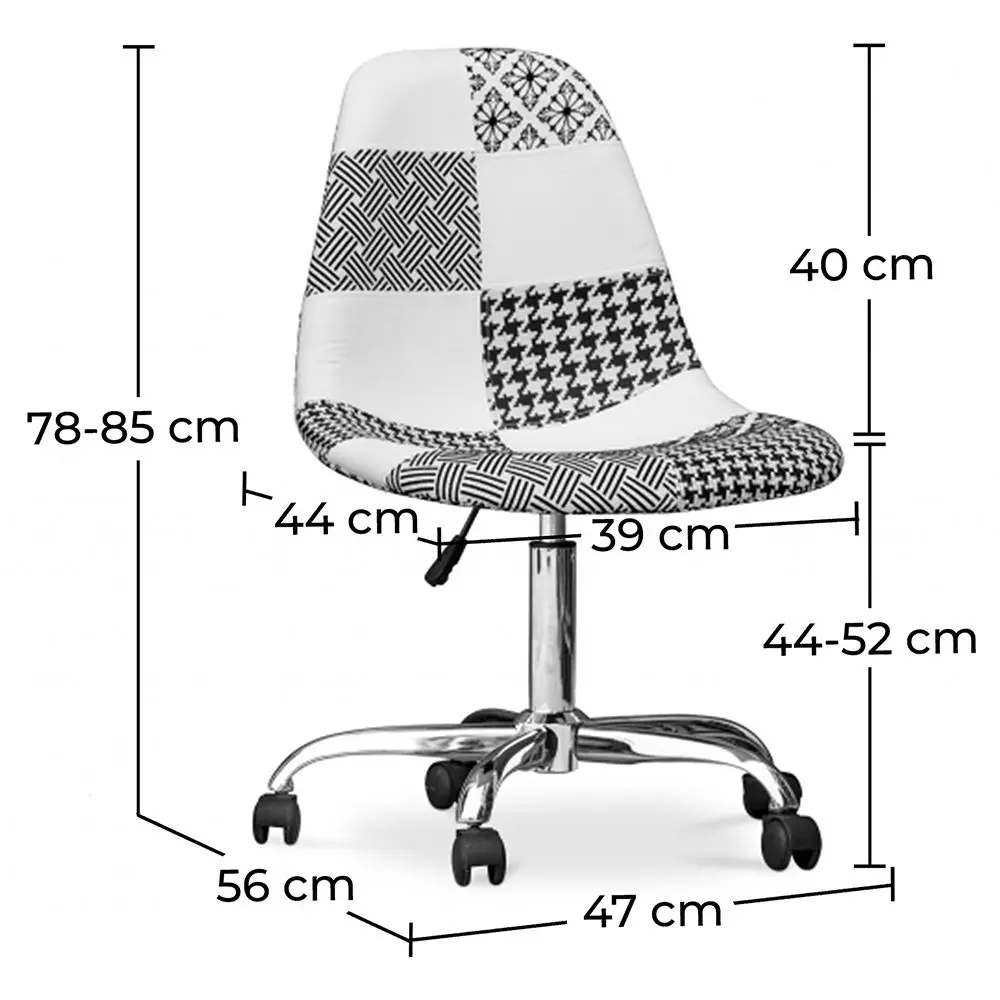 Suchen Sie einen Bürostuhl, der sich von der Masse abhebt? Dieser könnte der richtige für Sie sein. Mit attraktivem Sitzmaterial, gepolstert mit modernem schwarz-weißem Patchwork-Stoff. Die fünf Beine sind aus Stahl und daher extrem langlebig. Es verfügt auch über Räder an allen Beinen, so dass sich der Schreibtischstuhl leicht im Büro oder zu Hause bewegen lässt. Schließlich ist der Stuhl sogar höhenverstellbar und hat einen Drehsitz, so dass jeder den Stuhl bequem zum Sitzen findet. Dies ist ein einzigartig aussehender Schreibtischstuhl mit allen Funktionen, die Sie sich wünschen können.