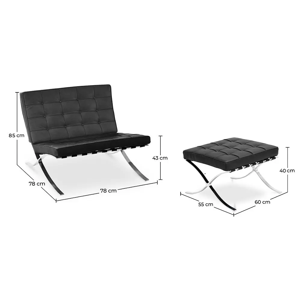 Der Sessel ist zusammen mit seiner Fußstütze in einem Set erhältlich, der Ihnen Raffinesse und Eleganz nach Hause bringt. Eine gelungene Kombination von Komfort und attraktiver Innenraumgestaltung für königliche Entspannung.