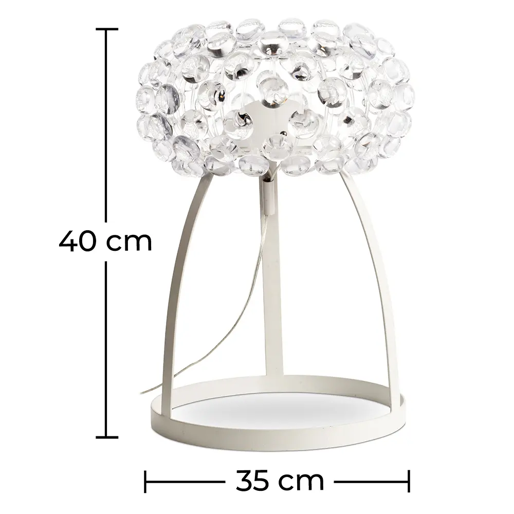 Die Crystal Tischlampe besteht aus Acryl-Perlen, sie wird die Helligkeit und Raffinesse Ihrem Wohnzimmer, Schlafzimmer oder überall, wo Sie es stellen, bieten. Das von der Lampe emittierte Licht ist warm und weich, perfekt, um eine einladende Atmosphäre zu schaffen.