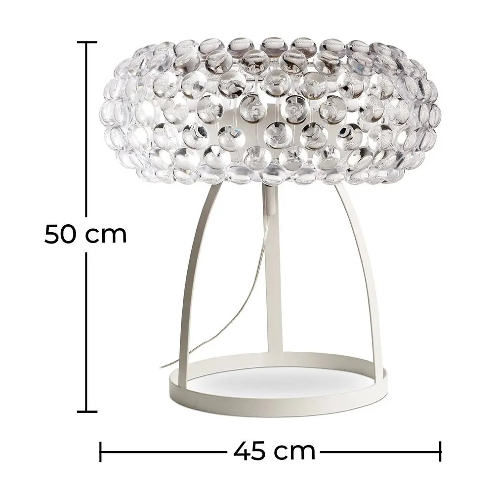 Die Crystal Tischlampe besteht aus Acryl-Perlen, sie wird die Helligkeit und Raffinesse Ihrem Wohnzimmer, Schlafzimmer oder überall, wo Sie es stellen, bieten. Das von der Lampe emittierte Licht ist warm und weich, perfekt, um eine einladende Atmosphäre zu schaffen.