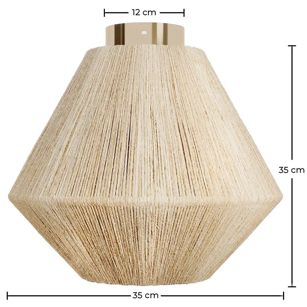 Die Naribu Deckenlampe ist ein handgefertigtes Meisterwerk, das die Schönheit der Natur mit einem Hauch von Vintage und Bohème vereint. Diese wunderschöne Lampe ist dafür konzipiert, der Mittelpunkt jedes Raumes zu sein und Charme und Eleganz zu verleihen. Die natürliche Faser, die für den Lampenschirm verwendet wird, erzeugt eine warme und sanfte Beleuchtung, die perfekt ist, um eine gemütliche und entspannende Atmosphäre zu schaffen. Der runde Standfuß unserer Deckenleuchte ist aus gealtertem Metall gefertigt, was ihr ein Vintage-Gefühl und einen Hauch von Antiquität verleiht und der Lampe Charakter und Authentizität verleiht. Diese Deckenlampe eignet sich sowohl für private als auch für öffentliche Räume, Hotels, charmante Restaurants und Cafés...