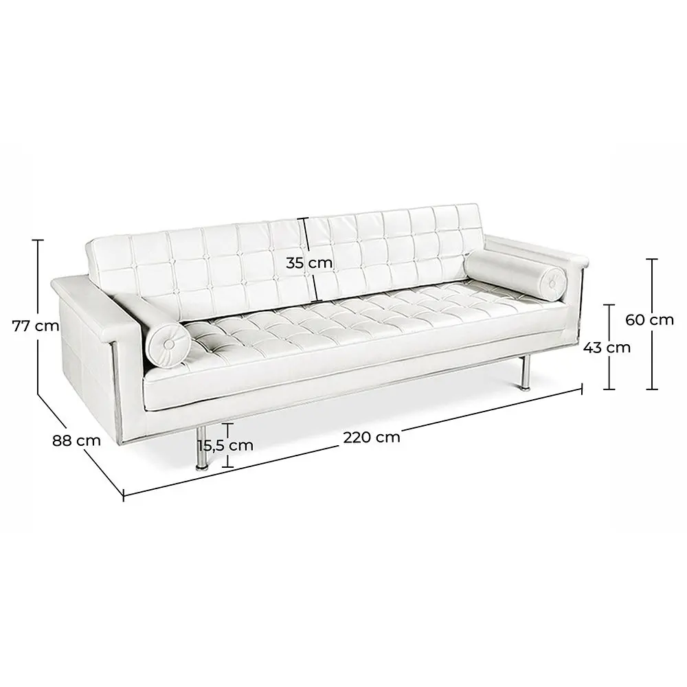 Nach seinem renommierten Designer benannt, ist dieses Trendy Design Sofa (Dreisitzer) sowohl elegant als auch komfortabel. Es besteht aus einem Edelstahlrahmen und ist mit Kunstleder bezogen. Dieses hervorragende Modell vereint Raffinesse mit modernem Design, Entspannung und einem Hauch von Frische. Dieses Möbelstück hat schlichte Linien und ein Design, das sich perfekt dem Raum anpasst. Dieses Sofa ist stabil und bietet doch üppigen Komfort. Lehnen Sie sich zurück und entspannen Sie mit einem guten Buch und machen Sie eine wohlverdiente Pause.