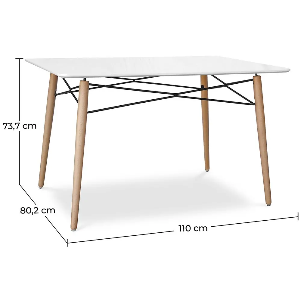 Wenn Sie einen rechteckigen Esstisch suchen, der zu jedem Stuhl passt, ist der Deswood Tisch perfekt für Sie. Dieser Esstisch besteht aus einem rechteckigen Holzbrett und Beinen aus Buchenholz, die durch ein Netzwerk aus schwarzen Stahlstäben miteinander verbunden sind.