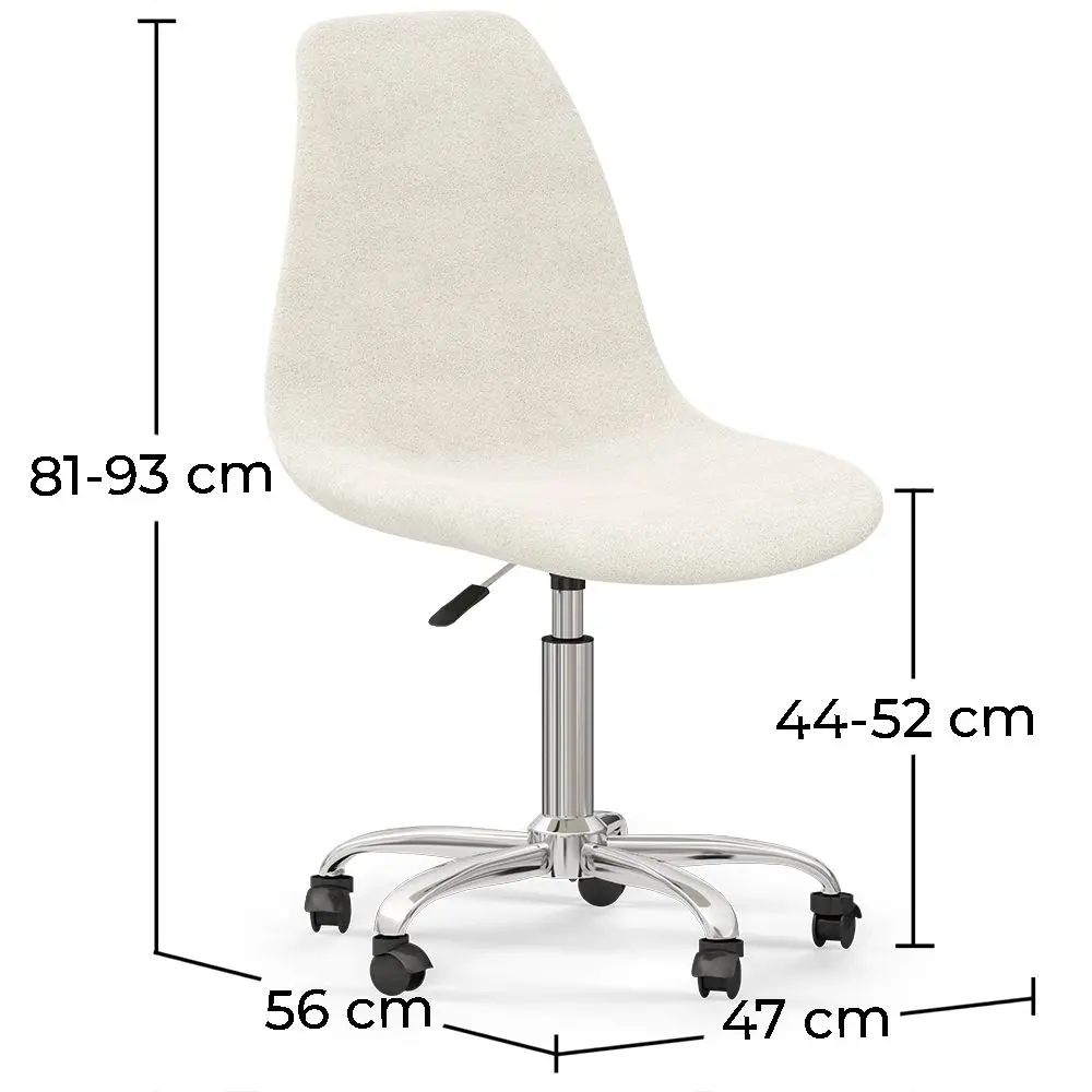Unser Bürodrehstuhl mit Rollen, gepolstert mit weißem Bouclé, ist ein Muss für Liebhaber der Innenarchitektur. Der höhenverstellbare Stuhl verfügt über eine ausgezeichnete Stabilität und Standfestigkeit sowie einen hohen Nutzungskomfort.