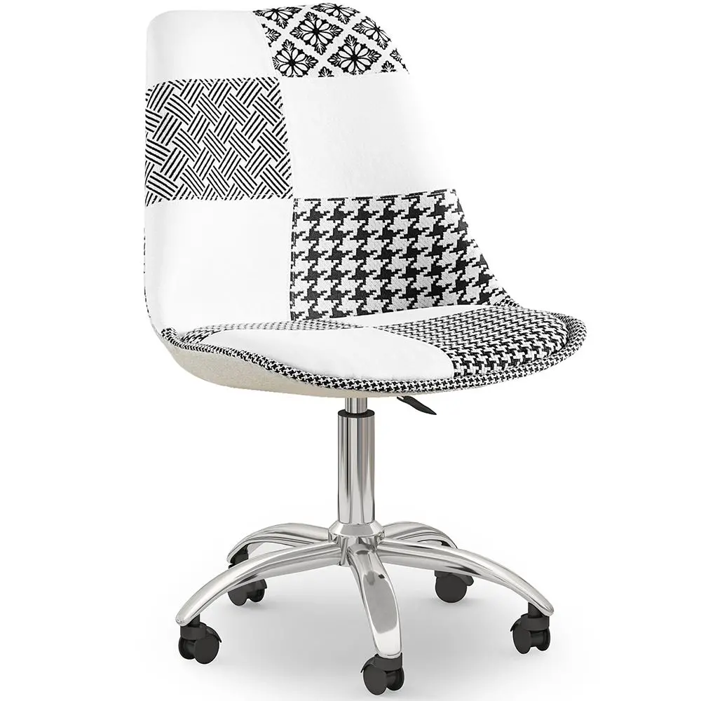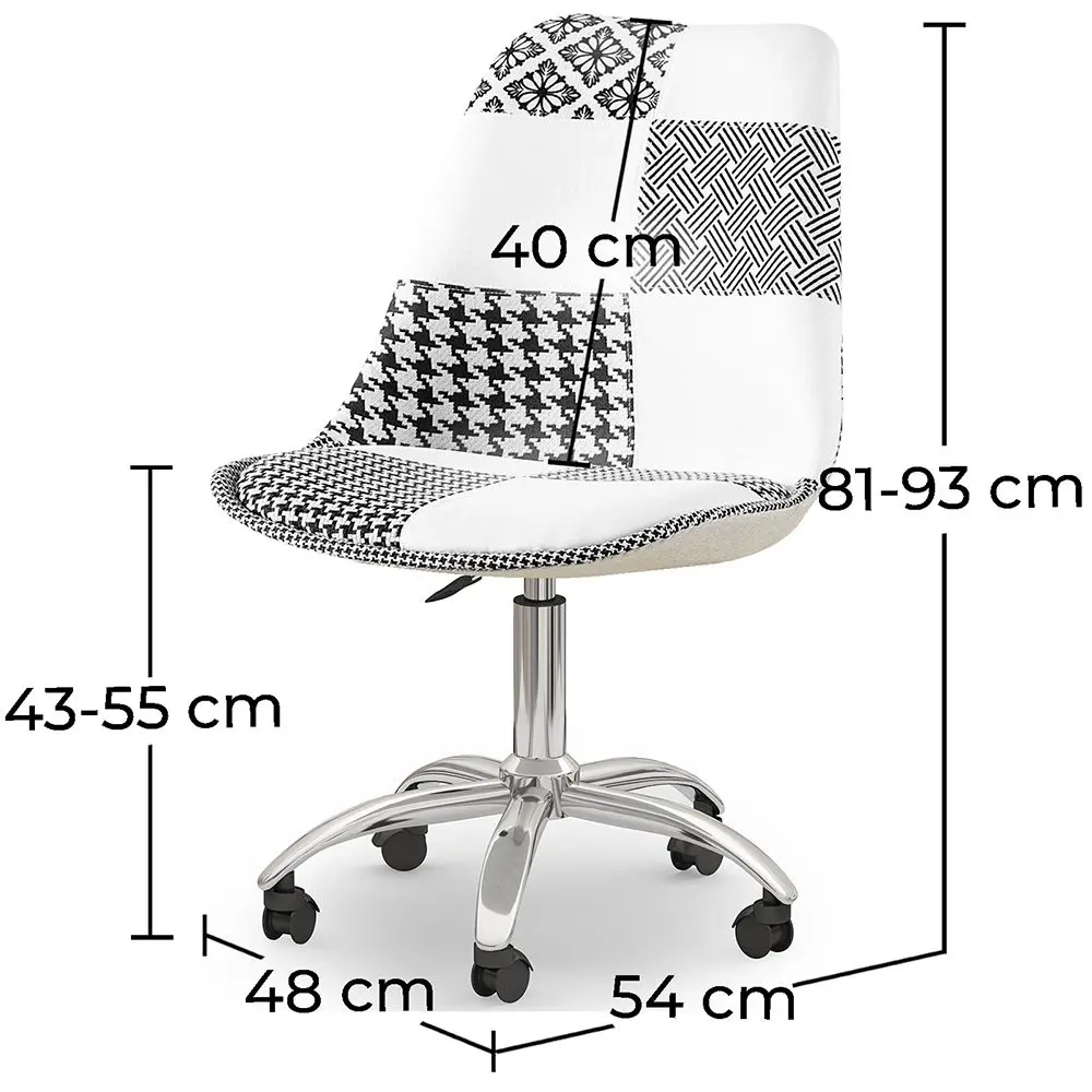 Dieser drehbare Bürostuhl mit Patchwork-Stoffbezug ist die beste Option, um Ihrem Büro oder Ihrem Schreibtisch zu Hause eine moderne und funktionelle Note zu verleihen. Der Stuhl ist aus hochwertigen Materialien hergestellt, um seine Langlebigkeit zu garantieren. Der gepolsterte Sitz und der hohe, ergonomische Rücken bieten die richtige Unterstützung für eine gute Haltung bei der Arbeit. Die Räder ermöglichen es Ihnen, sich leicht um Ihren Schreibtisch zu bewegen, um die Materialien zu erhalten, die Sie benötigen, ohne aufstehen zu müssen. Der Patchwork-Stoffbezug verleiht diesem Stuhl eine moderne Note mit einem einzigartigen Stil. Es ist die perfekte Wahl für jeden Arbeits- oder Studienbereich.