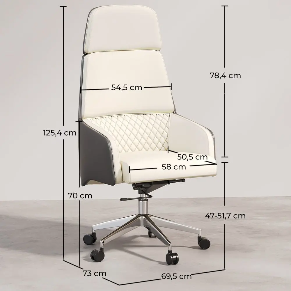 Erleben Sie Luxus und Vielseitigkeit mit unserem zeitgemäß gestalteten Bürostuhl. Der gepolsterte Sitz und die Rückenlehne bieten außergewöhnlichen Komfort, während die Aluminiumstruktur langfristige Stärke und Haltbarkeit gewährleistet. Seine schwenkbare, höhenverstellbare und verstellbare Funktion ermöglicht es Ihnen, Ihre Arbeitsposition individuell an Ihre ergonomischen Bedürfnisse anzupassen. Hochwertige Rollen ermöglichen es Ihnen, sich leicht und reibungslos in Ihrem Arbeitsbereich zu bewegen, was die Zusammenarbeit und Effizienz bei Ihren täglichen Aufgaben erleichtert. Mit gepolsterten Armlehnen für zusätzlichen Komfort und Unterstützung ist dieser Stuhl perfekt für sowohl lange Arbeitsstunden als auch wichtige Besprechungen geeignet, und sein schlankes und modernes Design verleiht jedem Büroumfeld eine stilvolle Note