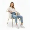 Verwandeln Sie Ihren Raum mit diesem Stuhl, der mit Samt bezogen ist und ein elegantes, muschelförmiges Rückenteil besitzt. Dieses geschwungene Design, inspiriert vom Glamour-Stil, verleiht Charakter und Komfort und wird zum Highlight jedes Esszimmers, Hotels, Restaurants oder Büros. Die goldenen Metallbeine verstärken die Struktur und fügen gleichzeitig einen Hauch von Luxus hinzu, der moderne oder raffinierte Dekorationen ergänzt.