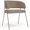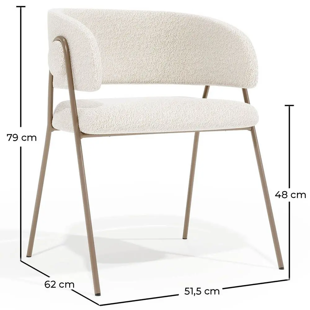 Die Kombination aus Bouclé-Polsterung und metallenen Beinen in champagnerfarbener Ausführung schafft eine ausgewogene und harmonische Ästhetik. Unser Manar Stuhl passt sich einer Vielzahl von Dekorationsstilen an, von zeitgenössisch bis klassisch, und wird zum Mittelpunkt jedes Esszimmers. Die Metallbeine in einem sanften und anspruchsvollen Champagnerton verleihen ihm einen modernen und raffinierten Look. Metall ist für seine Stärke und Langlebigkeit bekannt und gewährleistet einen robusten und widerstandsfähigen Stuhl, der den täglichen Gebrauch ohne seinen Charme zu verlieren standhält. Die Bouclé-Polsterung des Stuhls fügt eine Note von Textur und Weichheit hinzu und schafft so ein einzigartiges visuelles und haptisches Erlebnis. Die feinen und verflochtenen Schlingen des Bouclé-Stoffs bieten ein luxuriöses und angenehmes Sitzgefühl und verwandeln jede Mahlzeit in einen Moment des Komforts und der Entspannung.