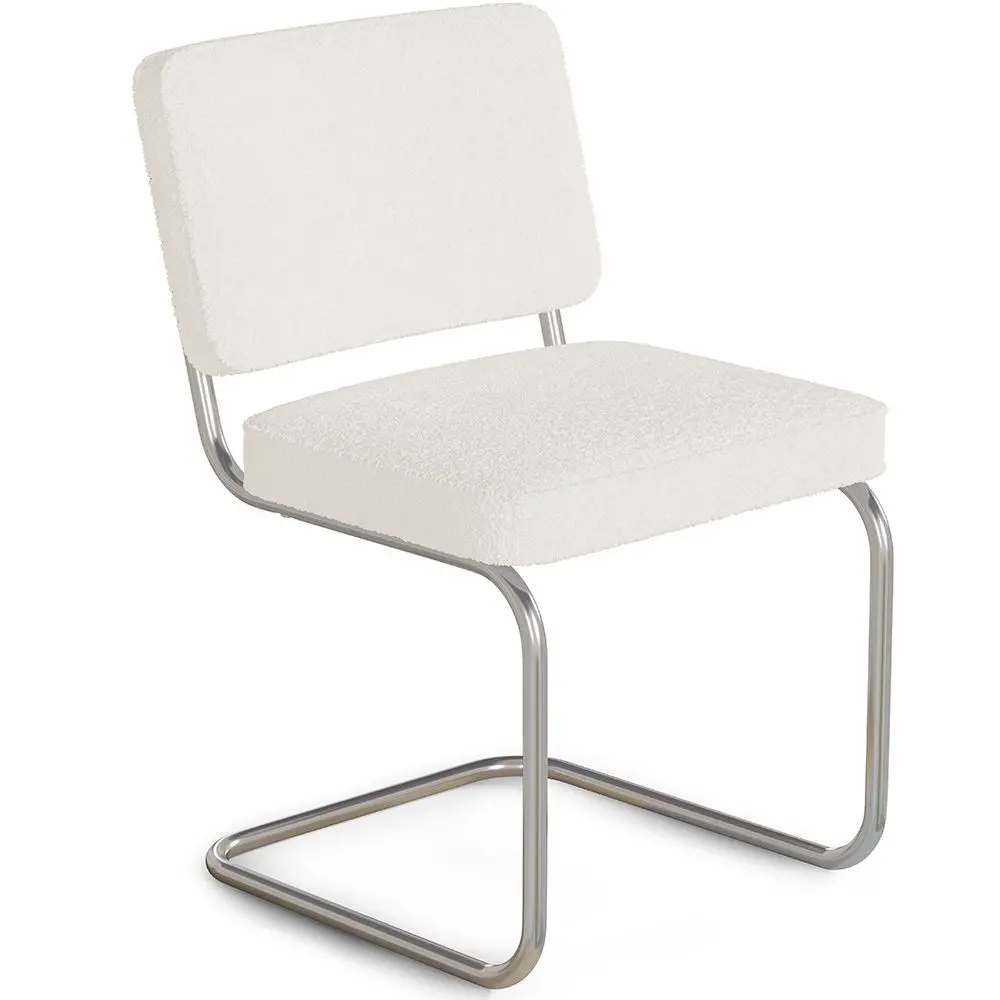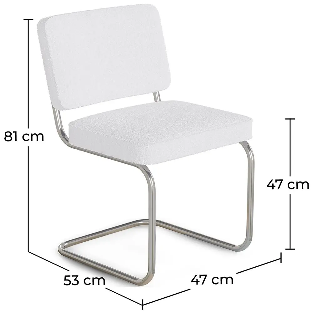 Mit diesem Boucle Esszimmerstuhl liegen Sie voll im Trend. Ein klares, helles Design sorgt für ein Gefühl der Reinheit im Esszimmer. Beine aus Metall in C Form stehen hier im Kontrast zu dem weichen Sitz- und Rückenpolster.