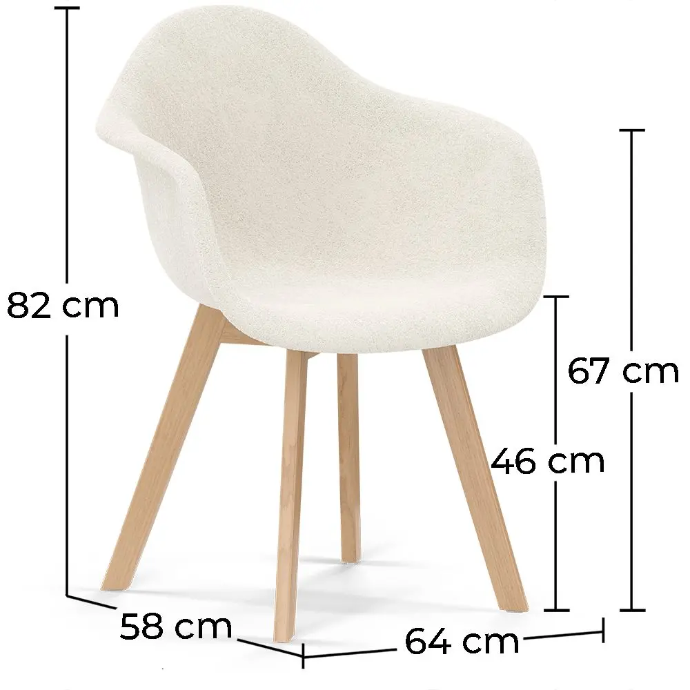 Der Dominic Esszimmerstuhl ist ein gepolsterter Bouclé-Stuhl mit Massivholzbeinen im skandinavischen Stil. Er ist elegant, modern und robust und wird aus hochwertigen Materialien hergestellt.