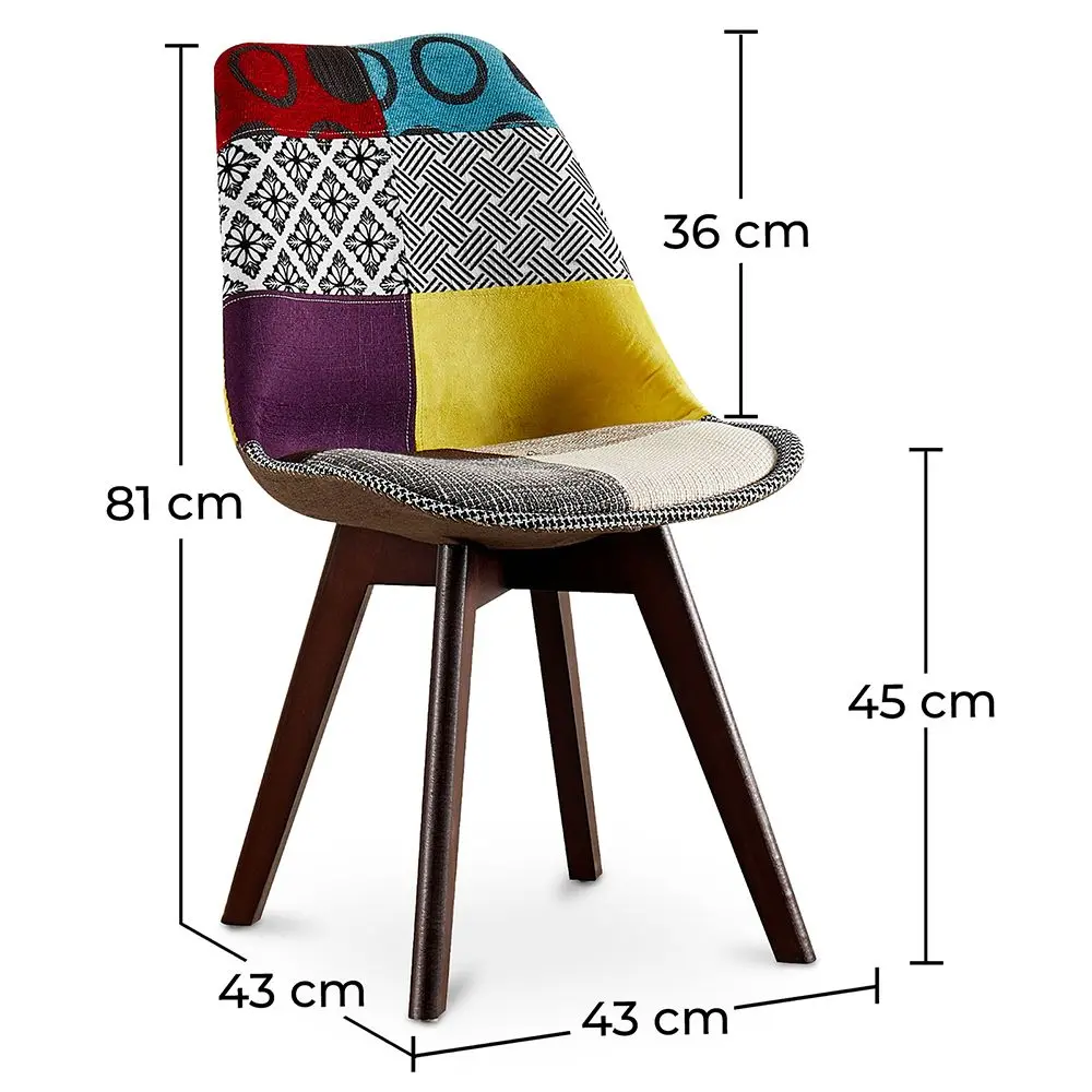 Wenn Sie ein konventionelles Esszimmer haben, möchten Sie vielleicht ein Möbelstück, das extravaganter aussieht, wie dieser gepolsterte Esszimmerstuhl. Der bequeme Stuhl kommt mit einem Patchwork-Design, funkelnden Farben, starken Metallbeinen und einem langlebigen Polstersitz, was ihn zu einem echten Luxus macht. Dieser moderne Esszimmerstuhl ist mit hochwertigem Stoff gepolstert.