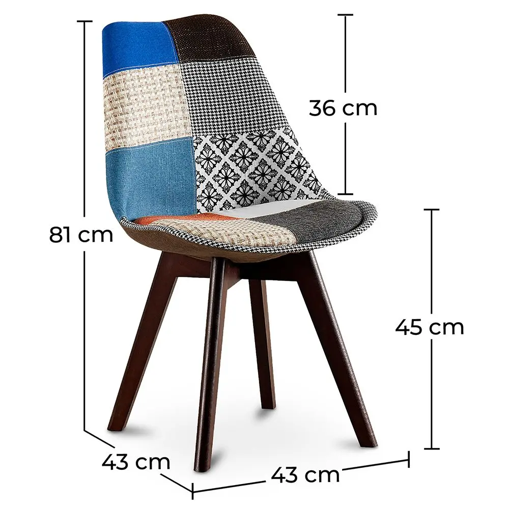 Möchten Sie einen Esszimmerstuhl aus Stoff, der einfach perfekt zu Ihrem Zuhause passt? Wählen Sie den skandinavischen Stuhl, der Ihrem Ess- und Küchenbereich einen frischen Farbakzent und Stil verleiht. Er verfügt über einen eleganten Look mit einem gepolsterten Sitz und langlebigen lackierten Metallbeinen. Außerdem hat der Esszimmerstuhl aus Stoff ein Muster im Patchwork-Stil, der den Innenraum Ihres Hauses bereichert.