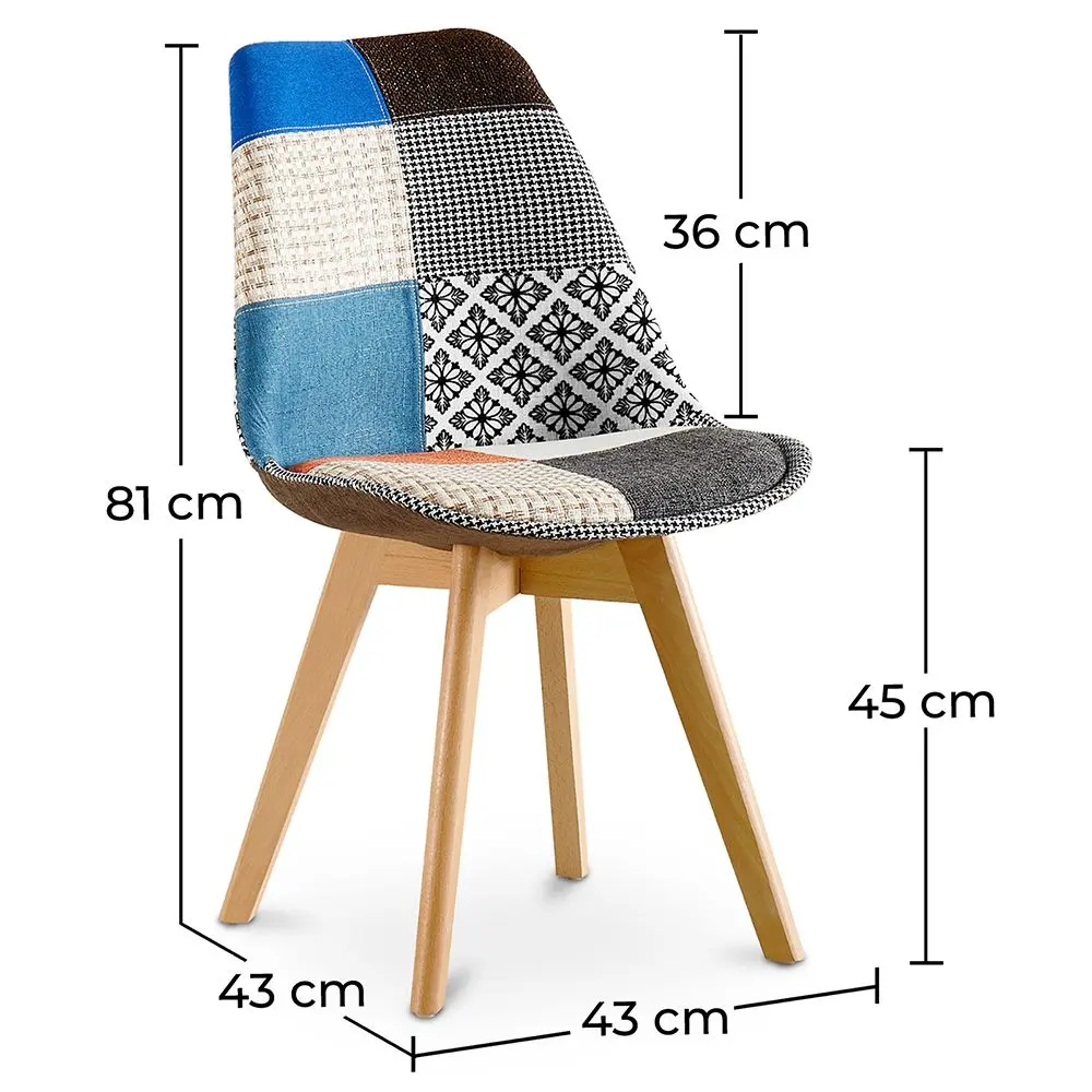 Wenn Sie auf der Suche nach idealen Möbeln sind, um Ihr Esszimmer in einen gemütlichen und freundlichen Ort zu verwandeln, sollten Sie diesen gepolsterten Esszimmerstuhl kaufen. Es ist ein sehr attraktiver Esszimmerstuhl mit einer strapazierfähigen und bequemen Stoffsitzfläche. Machen Sie Ihr Zuhause unwiderstehlich, indem Sie diesen skandinavischen Küchenstuhl mit wunderschönem Patchworkmuster hinzufügen.