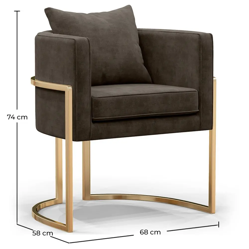 Der Vittoria Esszimmerstuhl vereint Eleganz und Komfort und schafft eine anspruchsvolle Atmosphäre in Ihrem Zuhause, Hotel oder Restaurant. Das charakteristische Merkmal des Vittoria Designstuhls ist sein exquisites, hochwertiges Samtpolster. Der weiche Samt umhüllt großzügig Sitzfläche, Rückenlehne und Armlehnen und vermittelt ein Gefühl von Luxus und Komfort zu jeder Zeit. Die Struktur unseres Esszimmerstuhls besteht aus hochwertigem massivem Metall, um Haltbarkeit und Widerstandsfähigkeit zu gewährleisten. Das vielseitige und elegante Design macht ihn zu einem attraktiven und funktionalen Stück in jeder Umgebung.