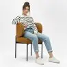 Der Calibri Esszimmerstuhl ist ein elegantes und anspruchsvolles Möbelstück, perfekt für Hotels, Restaurants und Gewerberäume, die ihren Kunden ein luxuriöses und komfortables Ambiente bieten möchten. Mit seinem Samtbezug und seinem schwarzen Metallrahmen zieht dieser Stuhl mit seiner attraktiven Ästhetik und seinem ergonomischen Design alle Blicke auf sich. Samt ist bekannt für seine reiche Textur und subtilen Glanz und verleiht dem Stuhl eine elegante Note. Darüber hinaus bietet Samt ein Gefühl von Komfort und Wärme, was das Sitzen in diesem Stuhl zu einem wahren Vergnügen macht. Der schwarze Metallrahmen sorgt auch für einen ansprechenden visuellen Kontrast und betont die Schönheit des Samtbezugs. Mit seiner geschwungenen und umhüllenden Form bietet dieser Designerstuhl ein Gefühl der Umarmung beim Sitzen, sodass Kunden lange Mahlzeiten oder Treffen genießen können.