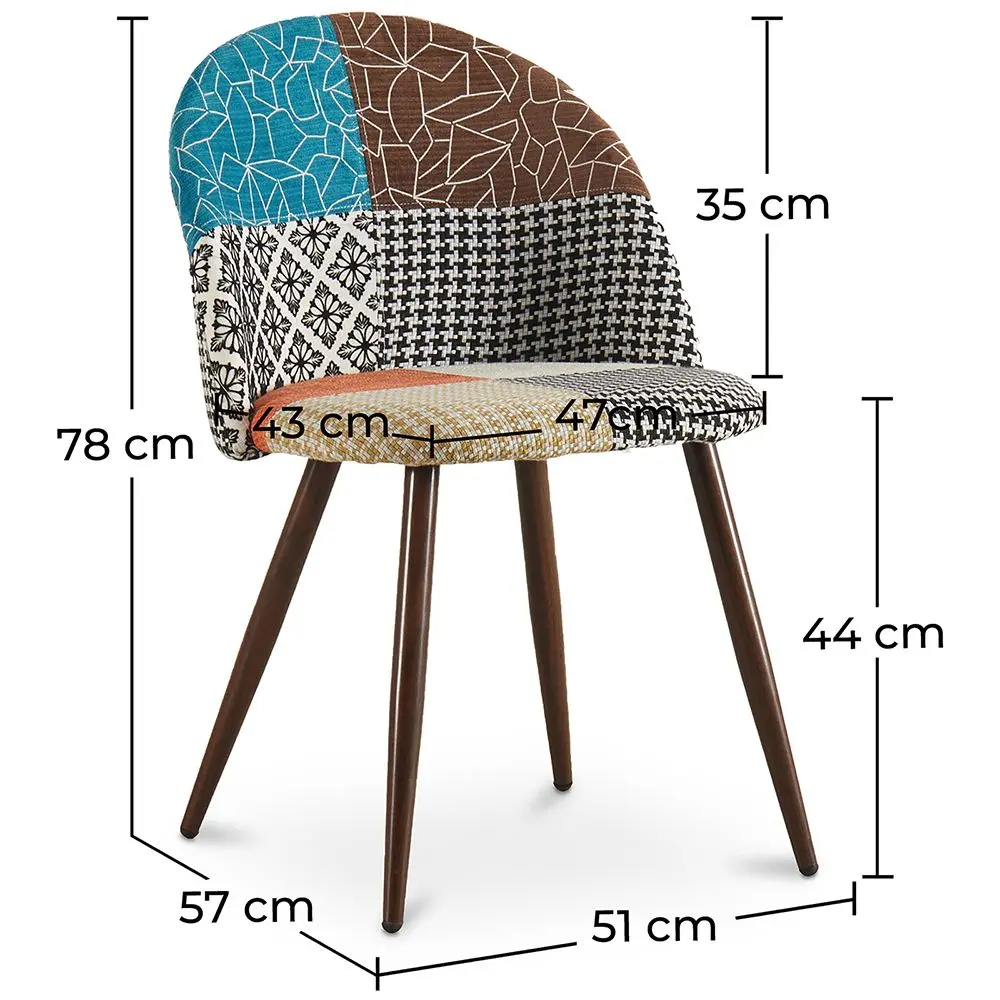 Dieser Patchworkstuhl hat solide Metallbeine mit einem hölzernen Transfergemälde, das jedem Zuhause definitiv Flair und Charme verleiht. Zeitgemäßer Komfort aus starken Materialien. Dieser Patchwork-Stuhl bietet ein komfortables Sitzgefühl und ergänzt das Ambiente der Inneneinrichtung. Der Designstil des Restaurants vereint einen gepolsterten Esszimmerstuhl, der mit Sicherheit die Wärme und den Charme eines Hauses widerspiegelt.