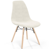 Vielseitigkeit und Design vereinen sich in diesem weißen stuhl ohne armlehnen, bezogen mit bouclé-stoff, perfekt für das esszimmer, homeoffice oder warteräume. Sein leichtes, zeitgenössisches gestell mit beinen aus hellem holz und stahl bietet Stabilität und einen anspruchsvollen Look. Komfort und Stil in einem funktionalen möbelstück, das sich an verschiedene umgebungen anpasst.