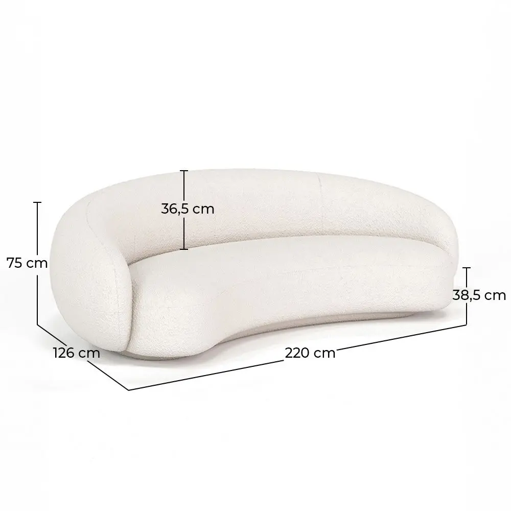 Das gebogene Sofa mit Bouclé-Stoffbezug Nathan ist ein einzigartiges und exklusives Stück mit einem modernen, eleganten und komfortablen Design. Es ist aus hochwertigen Materialien gefertigt, um dem Benutzer das beste Erlebnis zu bieten. Der Wollähnliche Bezug bietet Komfort, Luxus und Bequemlichkeit. Es eignet sich ideal für Hotels, Restaurants, Büros oder sogar für den Heimgebrauch. Es ist auch in Samt erhältlich, um sich an alle Räume anzupassen. Sie werden dem Charme dieses Sofas nicht widerstehen können!