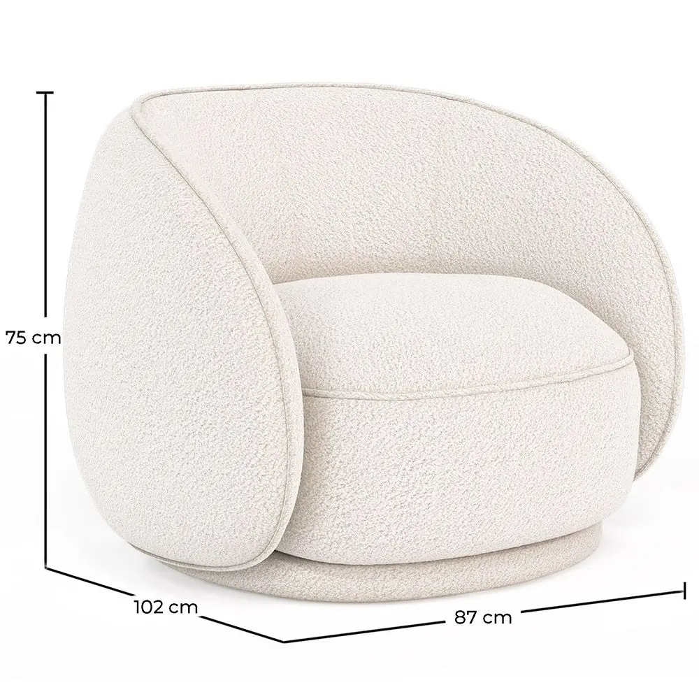 Der William Sessel, bezogen mit Bouclé-Stoff, ist ein hochwertiges und äußerst bequemes Möbelstück. Sein elegantes und luxuriöses Design ist von Sesseln in Luxushotels und Geschäftsräumen inspiriert. Der Bouclé-Stoffbezug, der Schafswolle nachahmt, verleiht diesem Sessel eine höchstqualitative Note. Bequem, modern und elegant - unser Design-Sessel William ist ein Muss für Liebhaber von Designer-Möbeln.