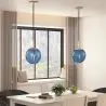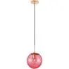 Die Pendelleuchte wird mit einem Glasschirm mit einem Durchmesser von 15 cm geliefert, der in verschiedenen Farben erhältlich ist. Die Lampe ist vollständig verstellbar und eignet sich sowohl für niedrige als auch hohe Decken. Die Lampenfassung, das Rohr, der Baldachin und der Haken sind aus Metall und in Gold gehalten.