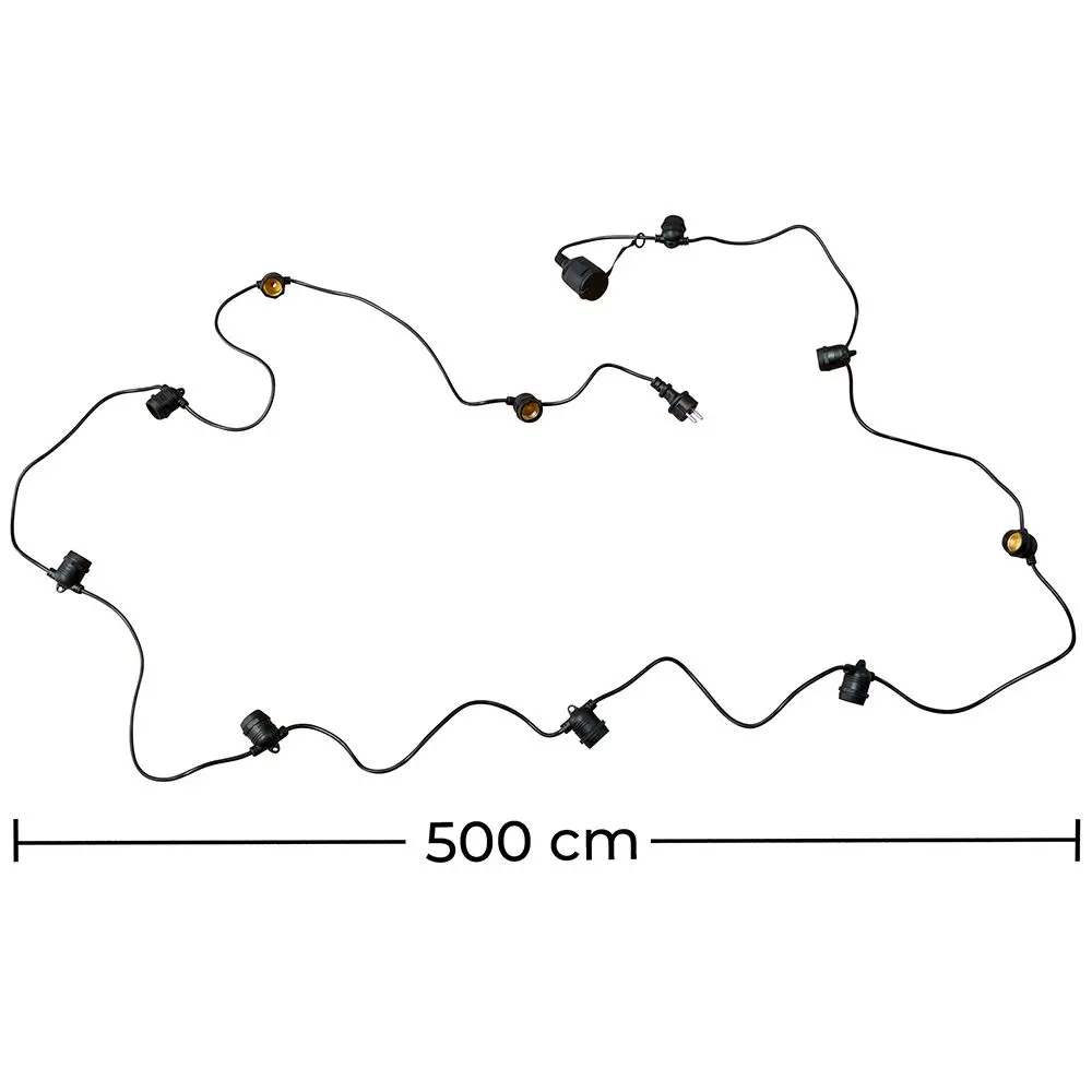 Wenn Sie Ihrer Inneneinrichtung eine andere Note geben möchten, wählen Sie mit dieser Girlande aus Glühbirnen. Es besteht aus einem 5 Meter langen Kabel und 10 E27 Fassungen für Glühbirnen.