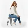 Dies ist ein sehr modischer Hocker vor allem dank der Haarnadelbeine, da sie ein großer Trend in der Welt der Innendekoration sind. Wählen Sie aus unserer breiten Palette von Farben eine, die am besten zum Rest Ihrer Einrichtung passt.