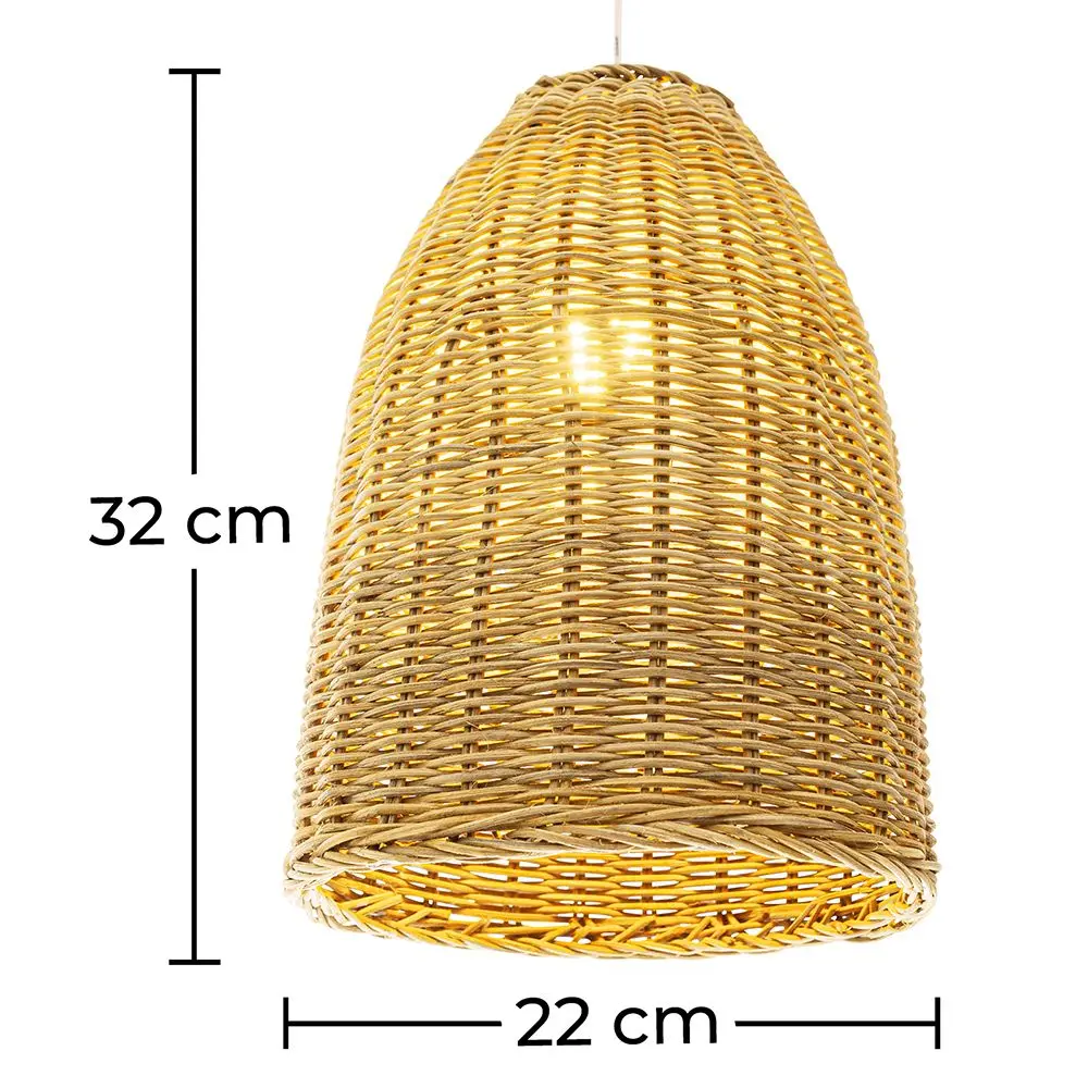 Diese Rattan Hängelampe bringt exotische Boho Vibes aus Vietnam in Ihr Zuhause. Der Boho Stil ist bekannt, rustikale Elemente mit anspruchsvollem Design zu verbinden. Sie werden begeistert sein, wie die Cam Pendelleuchte das Licht streut.