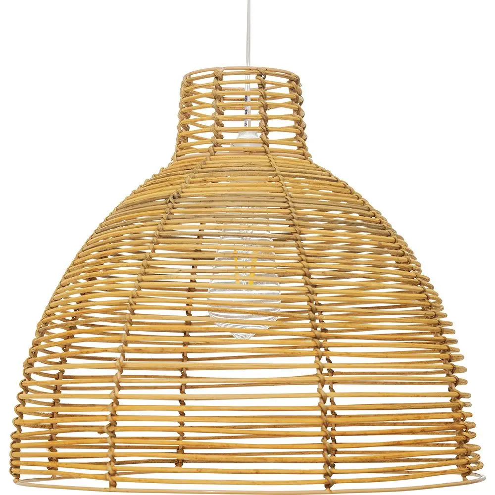 Die Kim Rattan Hängelampe hat ein sehr natürliches Design. Nicht nur das Design, sondern auch der Stoff ist natürlich, denn sie ist aus geflochtenem Rattan hergestellt. Mit dieser Pendelleuchte können Sie Ihre Räume auf warme und zarte Weise beleuchten. Lassen Sie sich von dieser 100% natürlichen handgefertigten Lampe verführen und genießen Sie das Lichtdesign im Boho Stil.