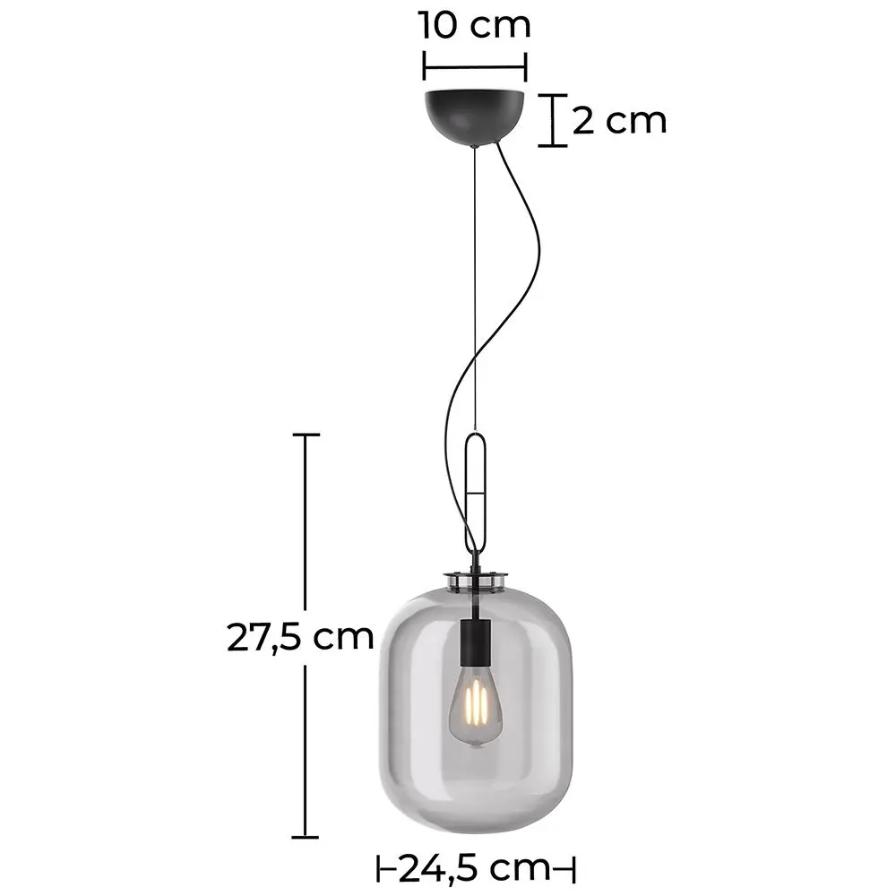 Diese Hängelampe mit schlichter, schwarzer Metallaufhängung bringt nicht nur Licht in Ihre dunklen Räume, sondern auch ein elegantes Design. Mit ihrer minimalistischen Ausführung passt diese Hängelampe hervorragend zu jeder Einrichtung und sorgt für ein abwechslungsreiches und gemütliches Ambiente. Das Glas des Lampenschirm gibt es einer schicken Rauchtönung.
