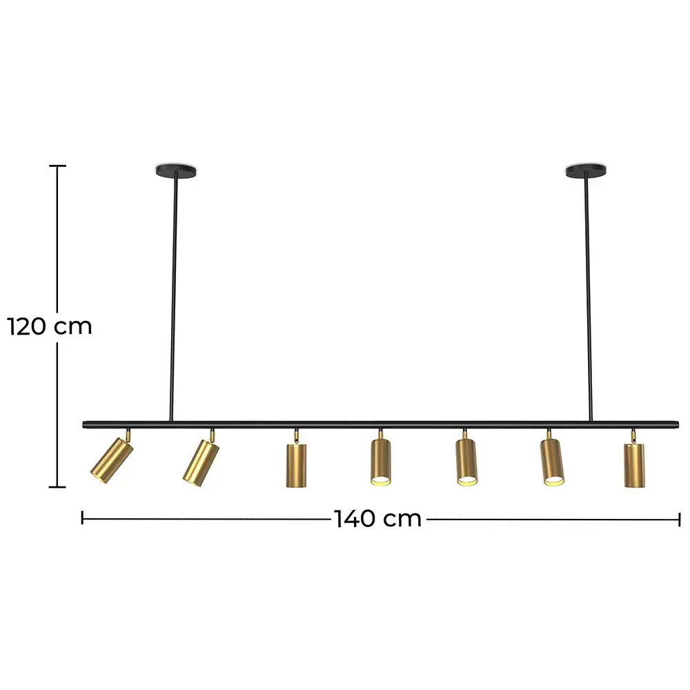 Diese Esszimmerlampe mit sieben einstellbaren Spots in Gold ist ein echter Fund. Sie ist perfekt für Lounges, Restaurants oder Cafés, die stillvoll eingerichtet sein wollen. Die Schiene in Länge von 140 Zentimetern ist nicht nur stylisch, sondern ermöglicht es weiterhin, die Spots gezielt auszurichten, um alles nach Wunsch auszuleuchten. So schaffen Sie nicht nur eine optimale Beleuchtung, sondern können auch für eine gemütliche Atmosphäre sorgen. Unsere moderne Hängeleuchte Lark wird in jedem Innendesign zu einem Schlüsselelement.